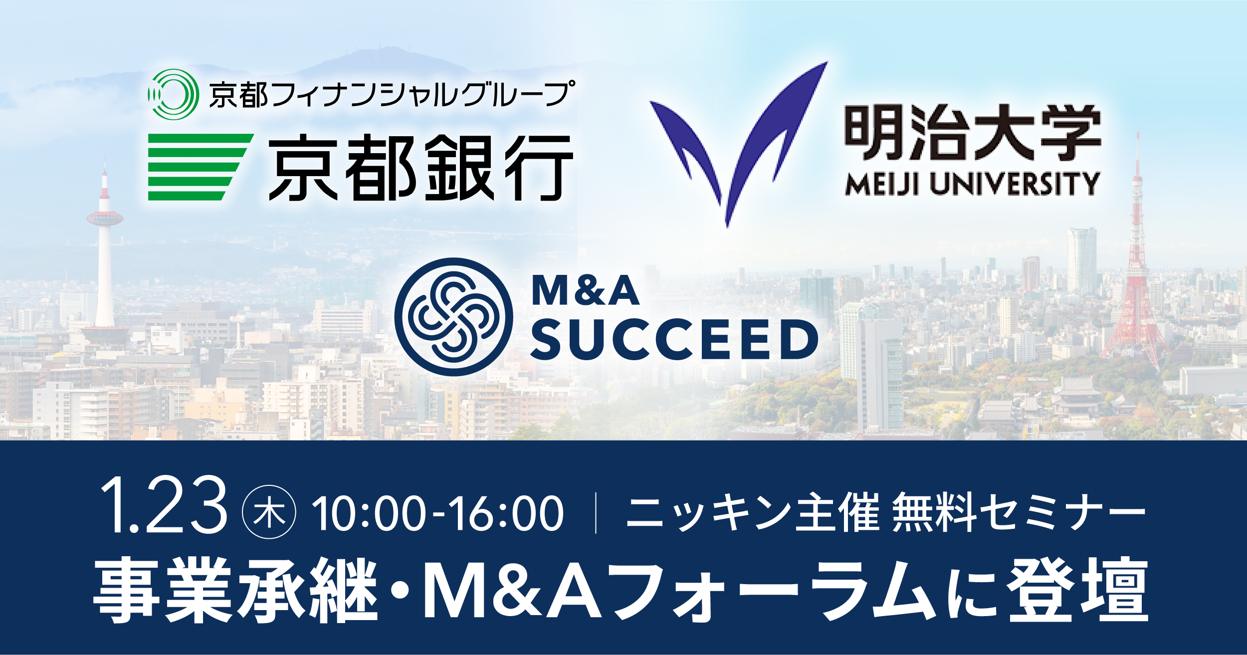 法人・審査制M&Aマッチングサイト「M&Aサクシード」を運営する株式会社M&Aサクシードは、日本金融通信社(以下、ニッキン)が主催する「事業承継・M&Aフォーラム 2025」(2025年1月23日)に登壇することをお知らせします。