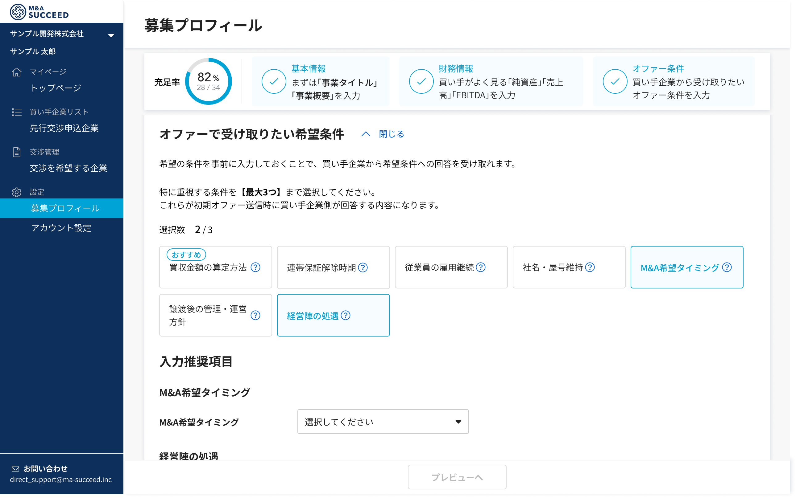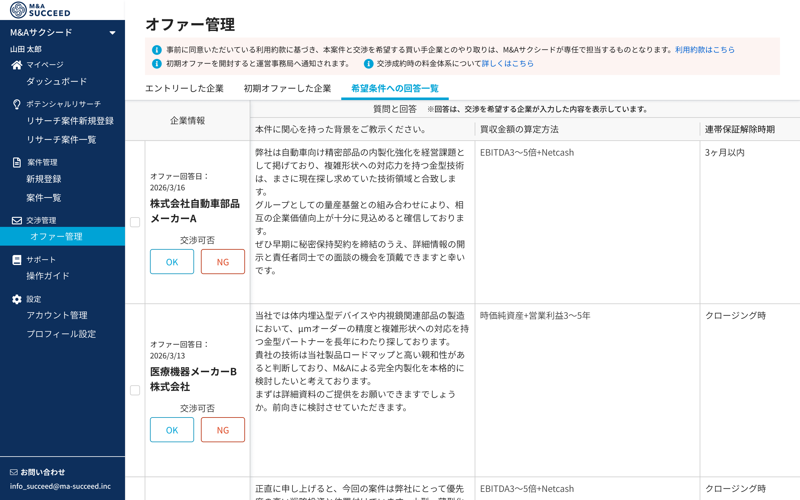 M&Aサクシードは、本機能を通じてM&A交渉プロセスの初期段階における課題解決に取り組み、より多くの企業に“納得のM&A”を提供してまいります。