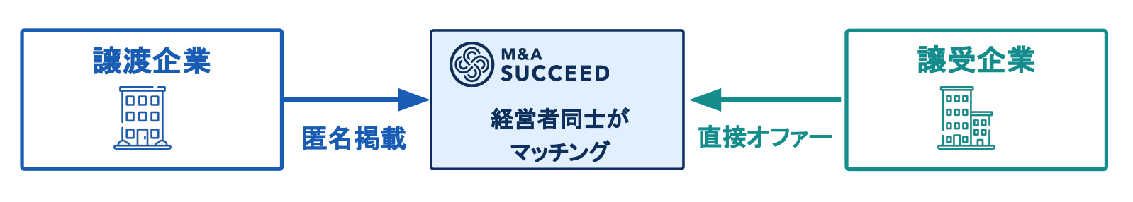 「M&Aサクシード」は、譲渡企業と譲受企業をオンライン上でつなぐ法人・審査制M&Aマッチングサイトです。譲渡検討企業のオーナー経営者は「M&Aサクシード」に会社や事業の概要を匿名で登録でき、譲受候補企業はその情報を検索して閲覧できます。譲受候補企業は興味を持った譲渡検討企業へ直接アプローチできるため、譲渡検討企業のオーナー経営者にとっては、潜在的な資本提携先の存在や、自社の市場価値を把握するきっかけになります。これにより、経営の選択肢の一つとしてM&Aを早期から検討できます。2017年11月にサービスを開始し、全国の譲渡検討案件が累計16,000件以上(掲載中3,100件以上)登録され、利用中の譲受候補企業は9,100社以上です。(2023年9月時点)URL:https://ma-succeed.jp/