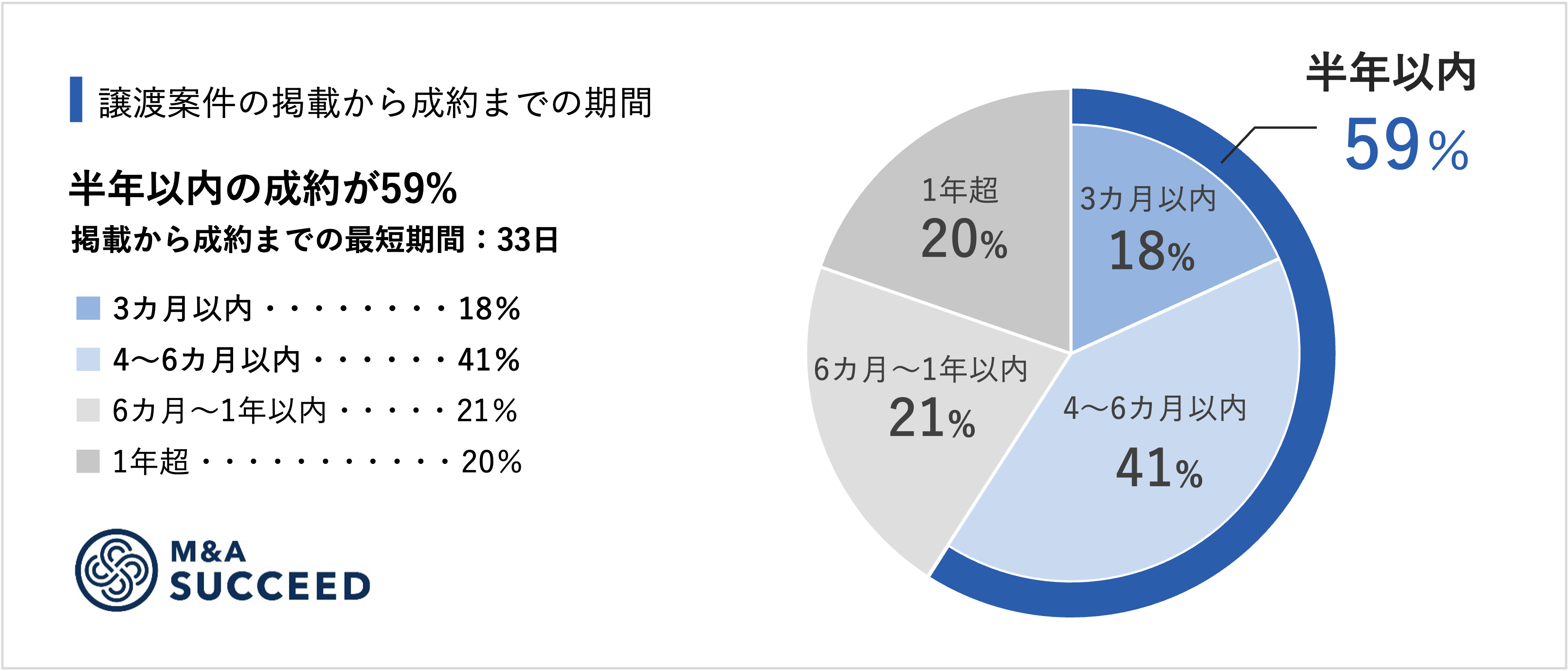 ・譲渡案件の掲載から成約までの期間:「半年以内」が59%
