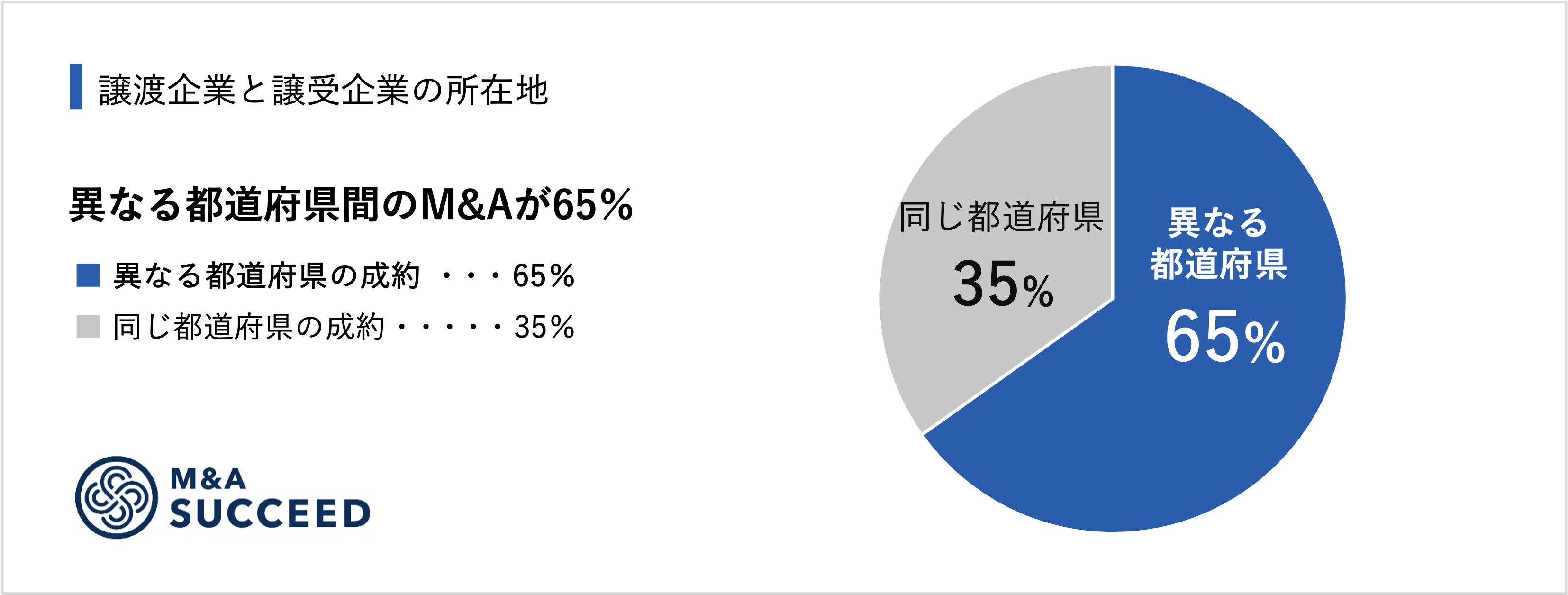 ・譲渡企業と譲り受け企業の所在地が異なる都道府県:65%