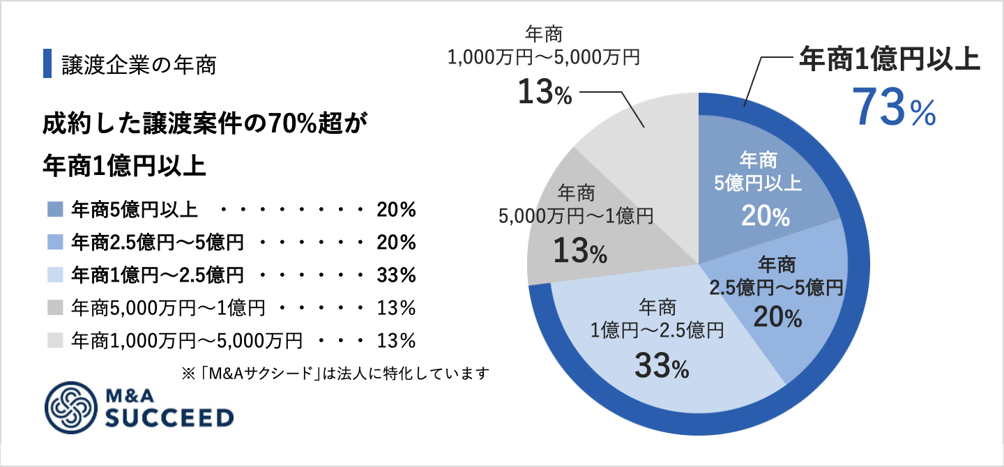 ・譲渡案件の年商:「1億円以上」が73%