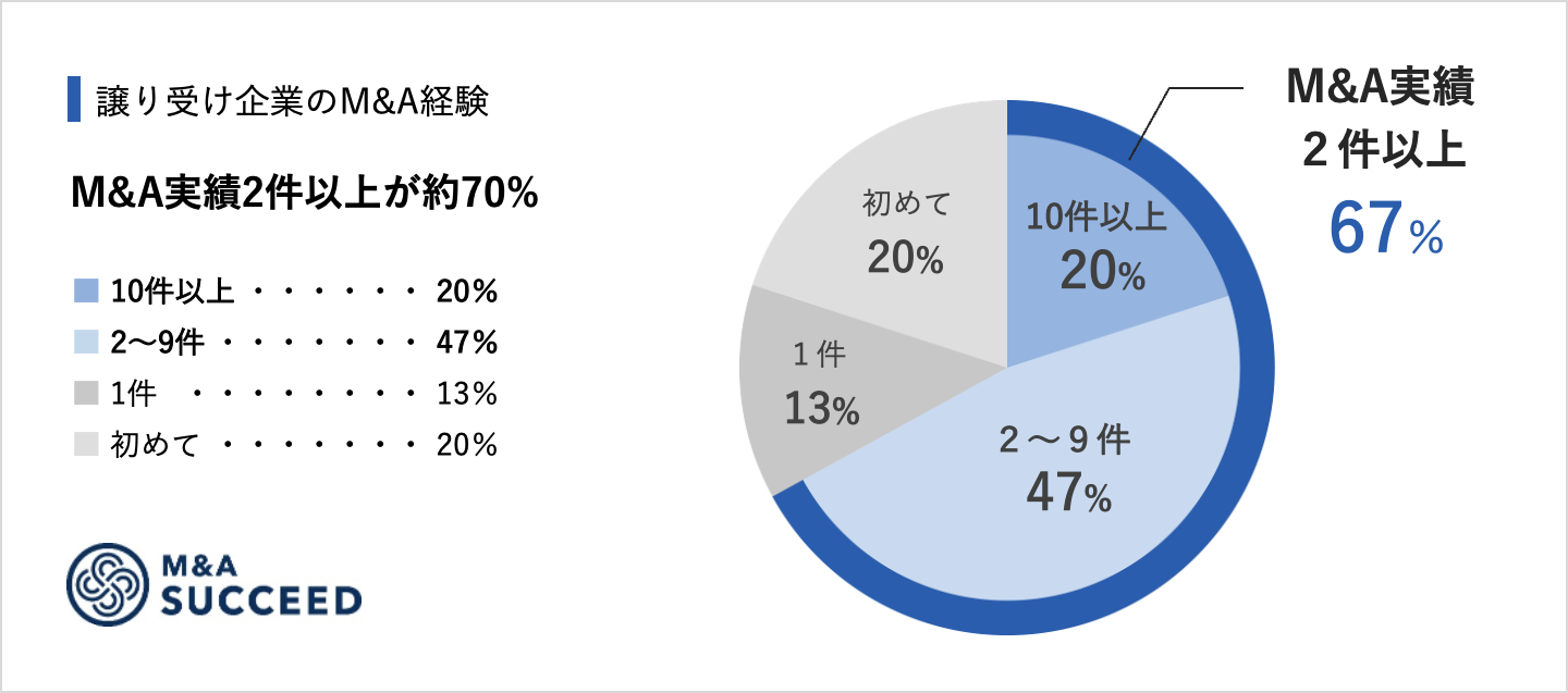 ・M&Aの経験:「M&A実績2件以上」が67%