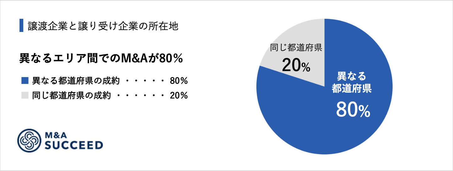 ・譲渡企業と譲り受け企業の所在地が異なる都道府県:80%