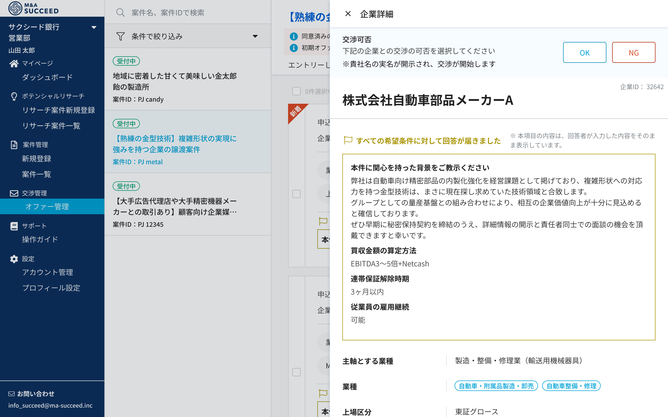 本機能は、顧客がアドバイザリー契約を締結する前の初期段階から、譲受候補企業からの具体的な譲受条件を提示できる仕組みです。