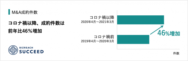 1)コロナ禍以降、M&A成約件数は、前年比46%増加(注1)。