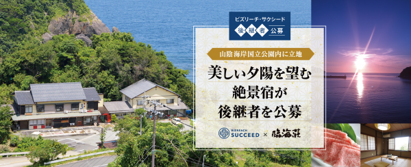 【ビズリーチ・サクシード後継者公募】山陰海岸国立公園内に立地する旅館「臨海荘」(兵庫県)~「日本の夕陽百選」の夕日を敷地内から望める絶景宿を残したい~
