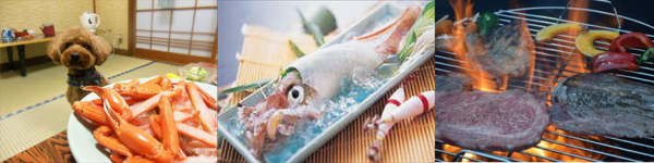 日本海に面していることから、新鮮な魚介類が揃う海の幸の宝庫であり、美しい森と水が培った山の幸の宝庫でもあります。その代表的なものが、香住ガニと但馬牛、そして日本酒です。食を求めていらっしゃるお客様のほか、近年では「ペットと泊まれる宿」として、家族でリピートしてくださるお客様にも支持されています。