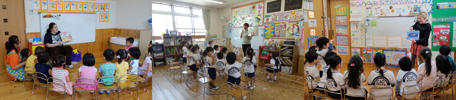 ソニーの創業者である井深大さんは幼児教育に情熱を注がれました。著書『幼稚園では遅すぎる』に共感した私は、井深さんが運営する施設での研修にも参加しました。彼の提唱した教育法「井深アピール」(幼児期における教育の重要性、幼児の能力は遺伝よりも教育・環境が優先する)を元にしながら、幼児と英語の関係を独自の方法で積み重ねました。お母さんにもクラスに入ってもらい、子どもと一緒に英語を学ぶという方法も試みました。幼児教育では、ただ英語を教えればいいというわけではありません。さまざまな能力を伸ばしてあげることが大切です。なかでも「人間力をいかに伸ばすか」に重きを置いています。現在、国際的な環境のなかで、語学教育・全人格的な教育・生涯教育を踏まえ、英語による幼稚園教育(4月1日時点で3~5歳児)のほか、プリスクール(2歳児)1歳児教育(母と子の英会話)、卒園生のためのクラスも設け、幅広い教育を 行っています。