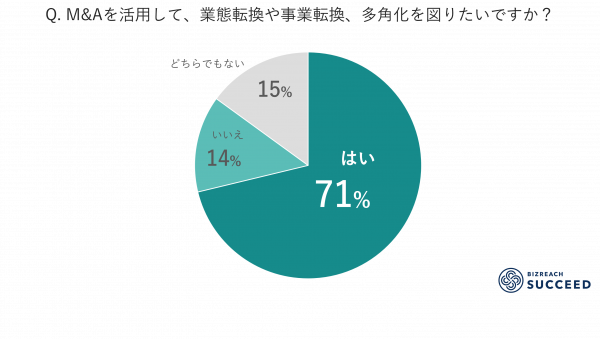 ・71%が「M&Aを活用して、業態転換や事業転換、多角化を図りたい」と回答